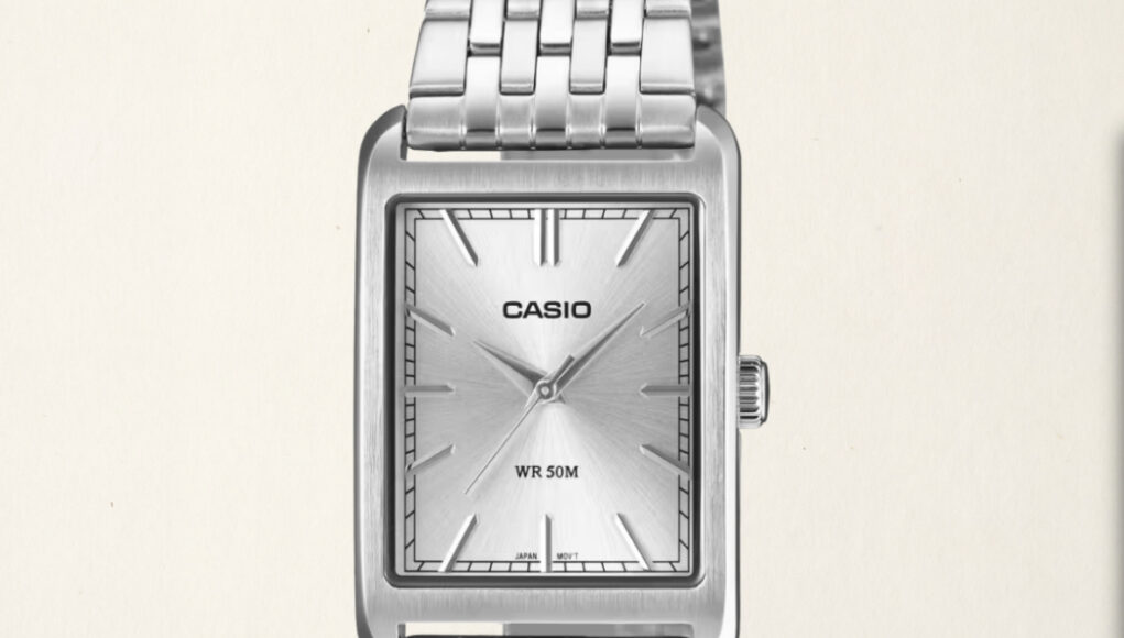 The series comes with a three-hand analog design inside a rectangular Sunray finish case, with an accuracy of up to ±20 seconds per month, and an SR626SW battery that lasts about three years.