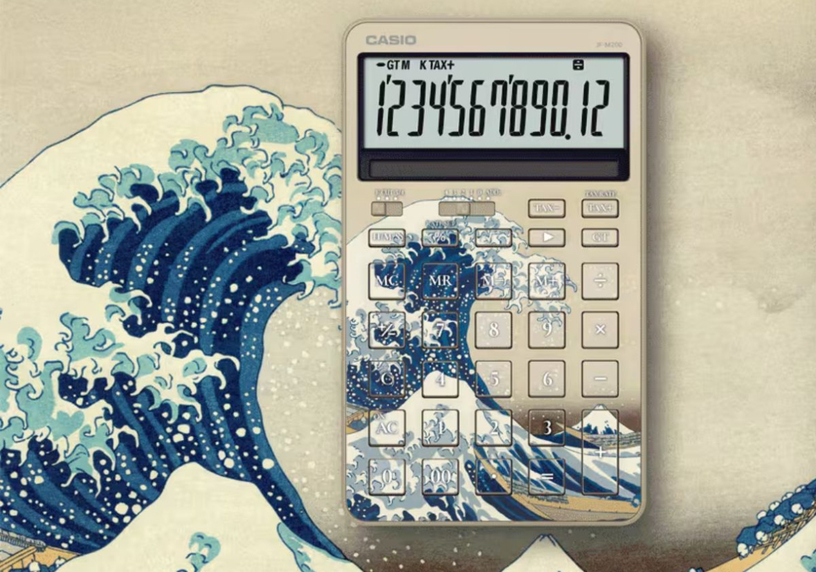 Casio has unveiled two limited edition calculators inspired by the work of artist Katsushika Hokusai, the JF-M200-TJ-KHK and JF-M200-TJ-KHG.