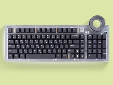 The Angry Meow Edition Creative Yoga Keyboard is a mechanical keyboard with a creative touch, featuring a large knob in the upper right corner. This knob, which provides tactile feedback, can be customized to act as a scroll wheel when browsing the web or to advance and delay when using video or audio editing software.