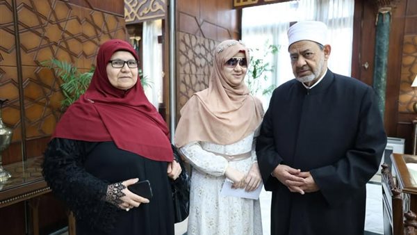 The Grand Imam, Dr. Ahmed Al-Tayeb, Sheikh of Al-Azhar Al-Sharif, received the blind Al-Azhar student, Maryam Abdel Aziz, who completed memorizing the Book of God Almighty despite her loss of sight, in a meeting that reflects her determination, superiority, and scientific excellence.