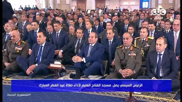 President Abdel Fattah El-Sisi arrived a short while ago at Al-Fattah Al-Aleem Mosque in the New Administrative Capital, to perform Eid al-Fitr prayerIn the presence of a number of senior statesmen and officials.